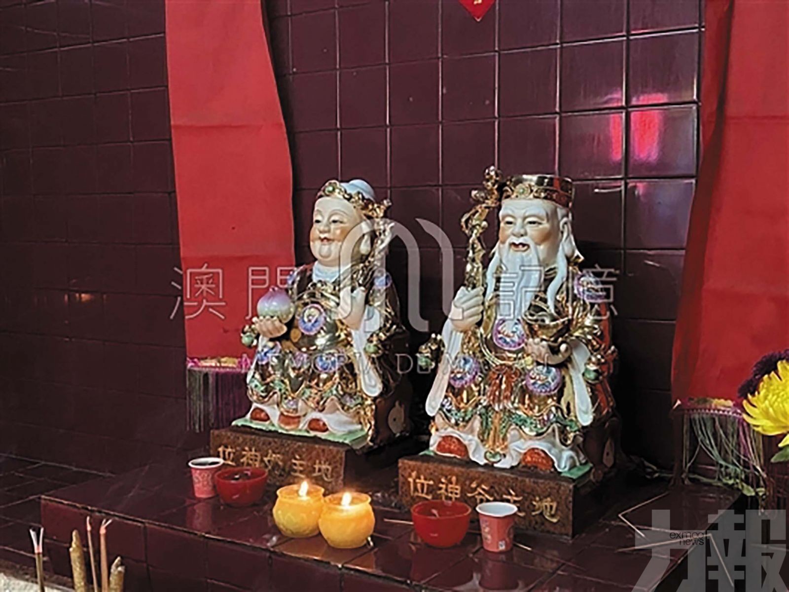 巴波沙福德祠土地公神壇,土地公公與土地婆婆並排而坐。(澳門記憶編輯部攝,摘自「 澳門記憶 」文史網)