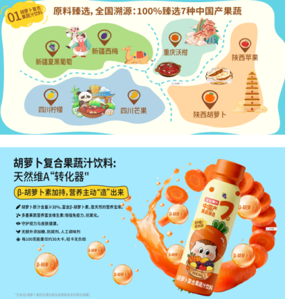 从口感上看,多种果蔬的甜、酸、香被精心配比,无论是胡萝卜口味还是莓果口味,都能带来层次丰富、回味悠长的独特体验。而在口感的加持下,西兰花、紫甘蓝、胡萝卜,被自然地融入了饮品中,即使是不爱吃蔬菜的群体,通过宝宝满分也能够获得蔬菜带来的充足营养,健康与美味相辅相成。