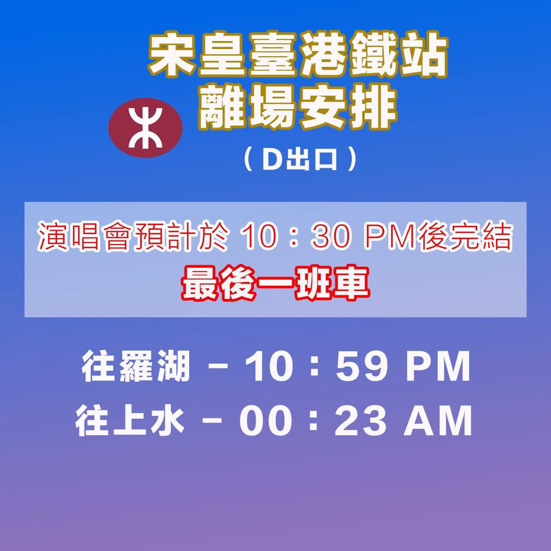 - 港鐵:提供2個主要車站接駁,請預先查閱尾班車時間