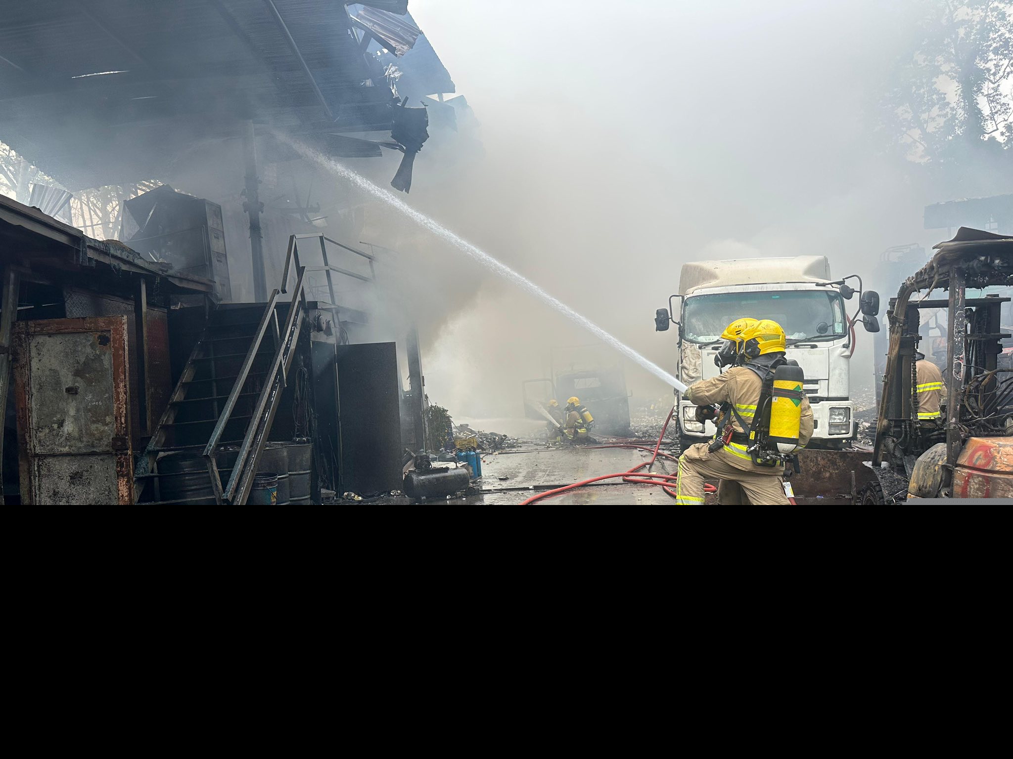 消防處大埔消防局局長張樂恒表示,消防人員於上午11時01分接報後4分鐘到場,火場面積約10米乘20米,內有一個8米乘3米的鐵皮構築物,首先起火的是一部廢鐵壓縮裝置。期間,人員出動兩條喉及兩隊煙帽隊灌救外,亦出動一條喉在外圍戒備,防止火勢蔓延。另亦出動一部滅火機械人和無人機協助滅火救援及火場探測。火警於中午約12時37分大致救熄,但仍需繼續射水降溫,防止死灰復燃。