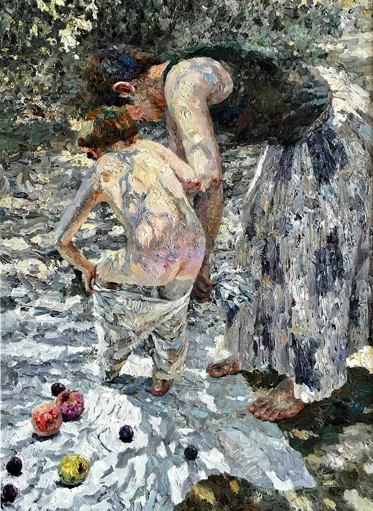 孙为民《温暖的阳光》布面油画,130×80cm,2021年