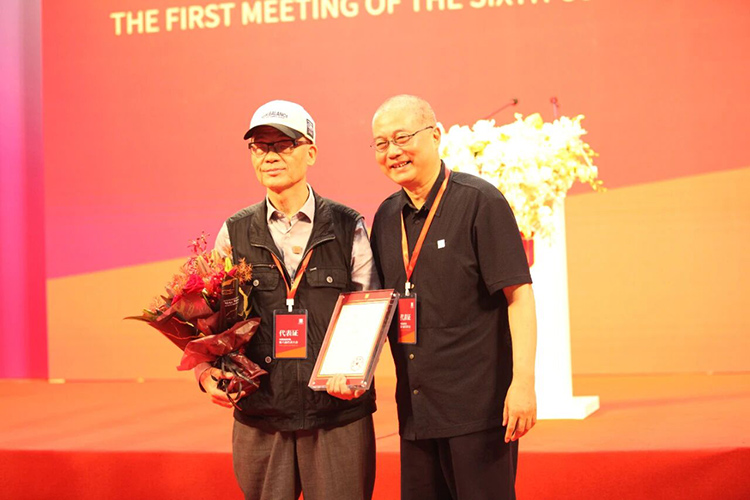 2021年,中国油画学会会长许江为孙为民先生颁发中国油画学会学术委员会终身委员聘书(图片来源:中国油画学会)