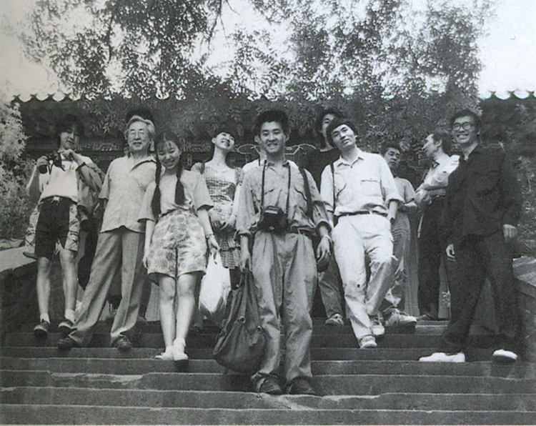 1993年暑期,靳尚谊、潘世勋、孙为民、朝戈带领一工作室本科生在北京法海寺参观壁画后在台阶上留影
