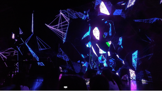 油罐中心的Q罐同时容纳了第三、四单元——“星球赫兹”与“频闪的史间”两个板块。这两个板块通过米歇尔的“生物图像”进行合并解读,并非指这两者毫无区别,前者意在寻求技术时代下的人类、技术、星球三者的调频可能,后者则是从每一代人在想象的未来出发,从“过往未来”的复调回响中试图寻得真正的“答案”。与前两单元不同的是,三、四单元都大量运用图像处理呈现,使观众从强烈交互感回归到观看者视角,通过各种图像,捕获关于数字与时间维度的思考。而米歇尔的“生物图像”理论强调图像与技术、生命共生性,恰好能串联“星球赫兹”的“技术 - 星球调频”与“频闪的史间”的“时间 - 图像复调”概念,二者均通过技术化图像承载生命感知与历史记忆,也符合“生物图像”对“图像生命力”的核心论述。
