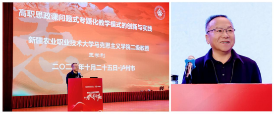 新疆农业职业技术大学马克思主义学院原党总支书记、院长,二级教授王学利以《高职思政课问题式专题化教学模式的创新与实践》为题作报告,分享了学校依托多类教育部、自治区课题,创新“案例导引,问题核心,三元融汇,五维协同”的高职思政课教学模式,通过内容专题化、课型转型、“五维协同”育人生态,解决学生学习思政课的关键问题,还分享了AI赋能下该模式的改革对策与落地建议,为提升高职思政课质量,培养符合需求的时代新人提供了可复制推广的新模式。