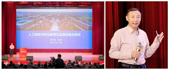 天津大学教育学院教授,教育部职业院校信息化教学指导委员会委员祝士明以《人工智能与职业教育五金建设融合路径》为题做报告,分析了人工智能背景下技能人才需求变化,表示职业教育需对接产业。报告分享了人工智能与金专业、金课程、金教材、金教师、金基地的融合路径,如专业对接智能企业、课程重构内容、教材数字化转型、培育“双师型”教师、建综合实训基地;表示此举可推动职教提质,为产业供人才,助力国家 “技能型社会”“制造强国” 战略。