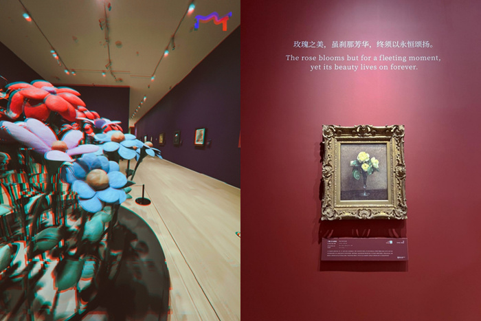左:“动静无尽:馆藏花卉主题艺术杰作”展览现场入口;右:海报上使用的便是雷诺阿的《瓶中花》