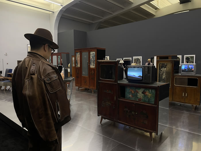 装置《哺乳期》(2025)的主体部分由上世纪80至90年代香河地区常见的旧家具和旧电视机组成,真实的影像记录让私人记忆延伸至具身空间。家具被不同明暗度的镜面和玻璃覆盖,观众仿佛置身于一个如园林般幽微、时间失去坐标的流动空间。而旧电视机中播放着2000年初艺术家从上海回到香河老家拍摄的真实生活记录的影像,这些未经布置的画面似乎构成了《香河》的某种前身。