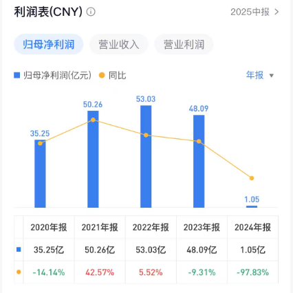 2023年-2024年,蒙牛乳业营收分别为986.24亿元、886.75亿元,同比增幅分别为6.51%、-10.09%;归母净利润分别为48.09亿元、1.05亿元,分别同比减少9.31%、97.83%。