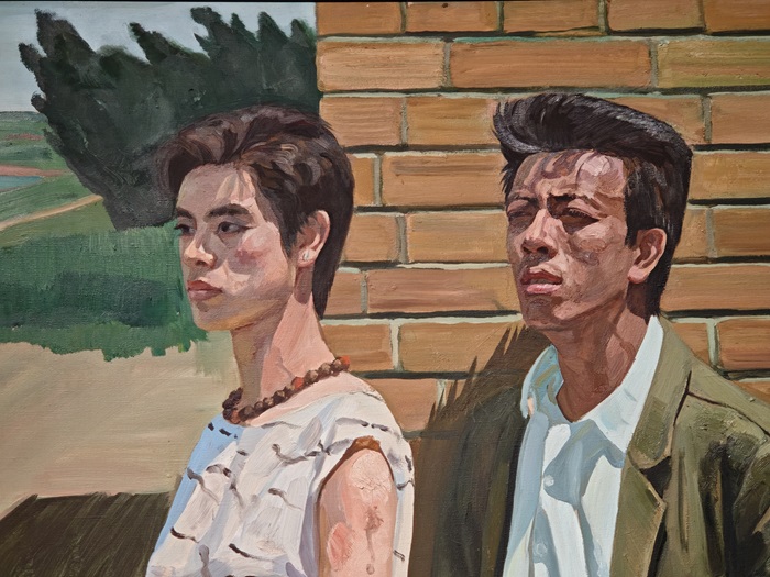 《田园牧歌》是他“新生代”阶段的重要代表作。画中刘小东和喻红在阳光下并肩站立,斜倚着墙壁,看向远方,男主人公眯起了眼,眉头微皱。作品就像电影的长镜头,把一秒钟尽可能拉长,展开生活中的空白部分,诉说着爱情中的点滴状态。