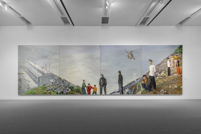 《三峡新移民》,亚麻布油画,2004,300×1000cm ©泰康收藏“刘小东:河东,河西”展览现场,泰康美术馆,2025