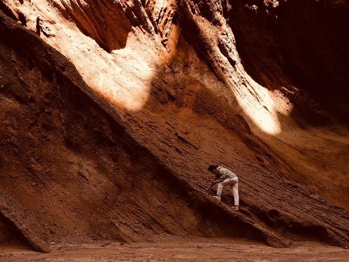 艺术家加工天山大峡谷的红色黏土颜料 ©艺术家 ©INKstudio