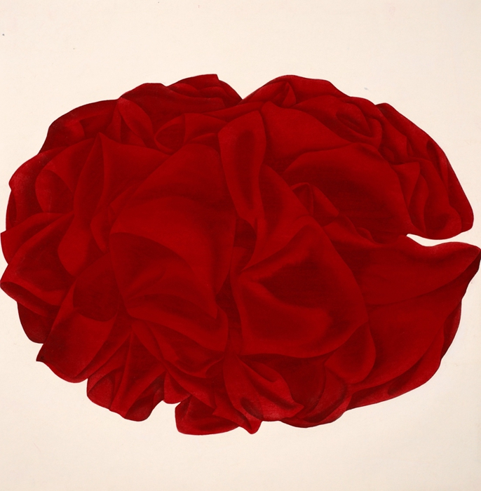 在康春慧的眼中,边界有着多重的含义。她曾说:“我认为边界不仅仅是划分领土的线,而是连接不同领域的区域。这个理念源自于《须弥》系列。‘须弥’的名字源于‘芥子纳须弥’,意味着微观世界即是宇宙。” (须弥山是宇宙的中心,五峰圣山。)在作品中,存在视觉上的边界:红花映照于画中花,而画之意旨由此传达。同时,自然与人造之间也存在着一种重要的边界。《须弥》系列正是承载了这种模糊的边界概念,康春慧通过在褶皱处创造柔和的边缘,而非尖锐的界限,来表达这种模糊性。我们无法看到花朵的全貌:我们知道褶皱中隐藏着某种东西,却看不见,就像我们可能怀疑精神世界中潜藏着什么,却无从知晓。我们只能看到一部分,而这部分恰恰引发了我们的好奇和沉浸感。由此可以思考这样一个可能性:《须弥 No.25》中蕴含着宇宙,正如芥子亦然。