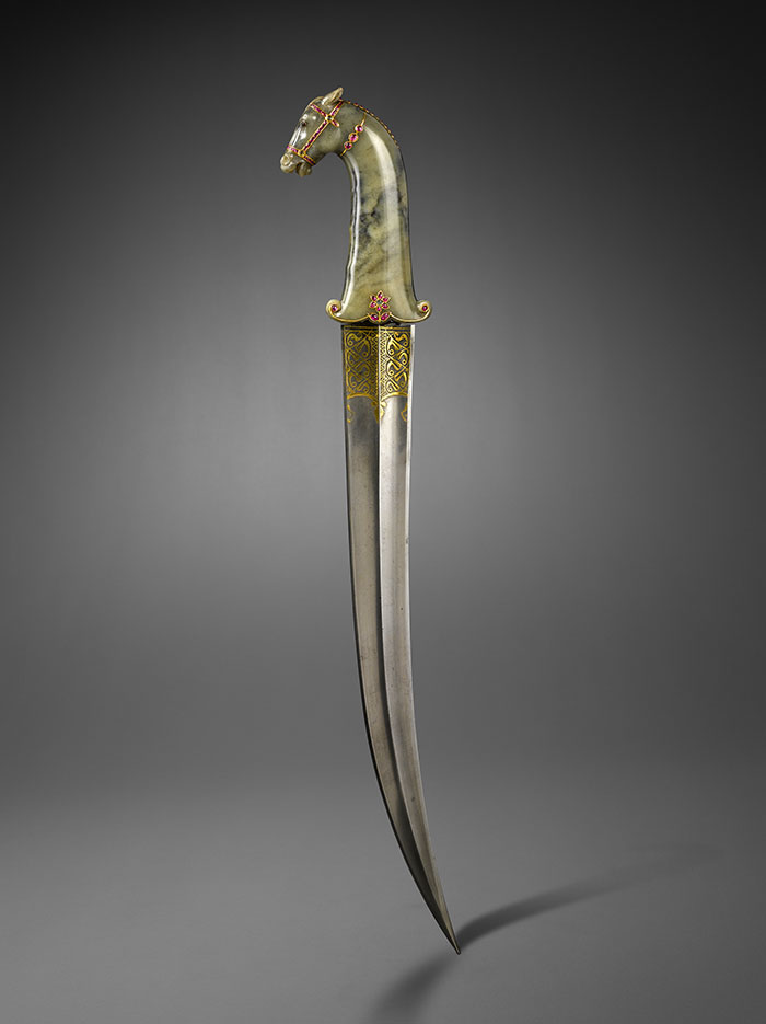 匕首,印度,17世纪 钢、玉、金、红宝石、祖母绿