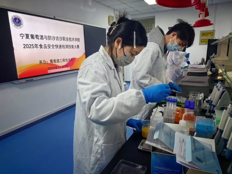 宁夏葡萄酒现代产业学院承办的食品快速检测技能大赛现场