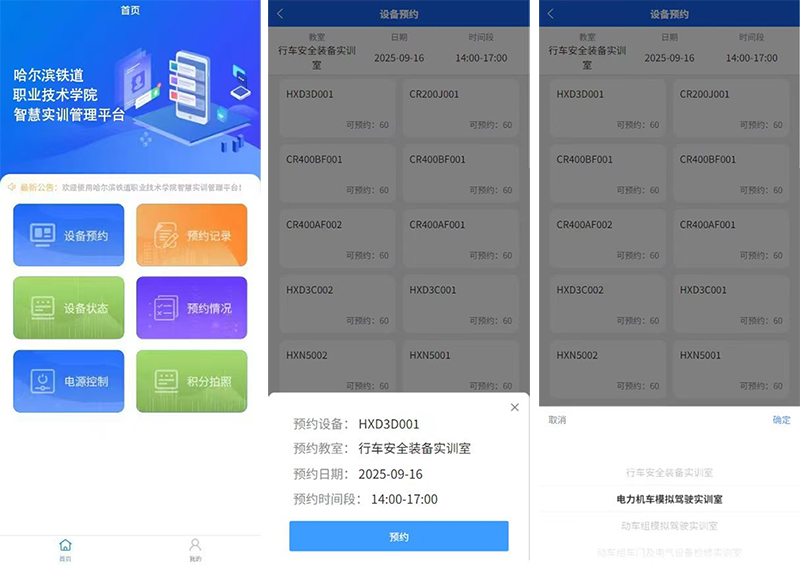 一是建设虚实一体化实训基地。深度融合MR、VR等虚仿技术,1∶1还原哈尔滨局管内运营线路和主型机车,建成集安全体验、模拟驾驶、虚拟检修于一体的虚仿实训基地,有效解决了传统实训教学“三高三难”问题;依据国家铁路标准,建成“三站两区间”综合教学站场,有效解决了真实作业环境缺乏等难题。二是实施教学环境智能化升级。遵循《职业院校智慧校园规范(试行)》等标准,统一数据接口和通信协议,确保新增设备数据无缝接入;对现有实训室进行改造,部署智能PDU等感知层设备,为实训室精细化管理奠定基础;对已有设备进行升级,如为机车模拟操作台加装AI摄像头等智能感知组件,实现操作过程精准评估。