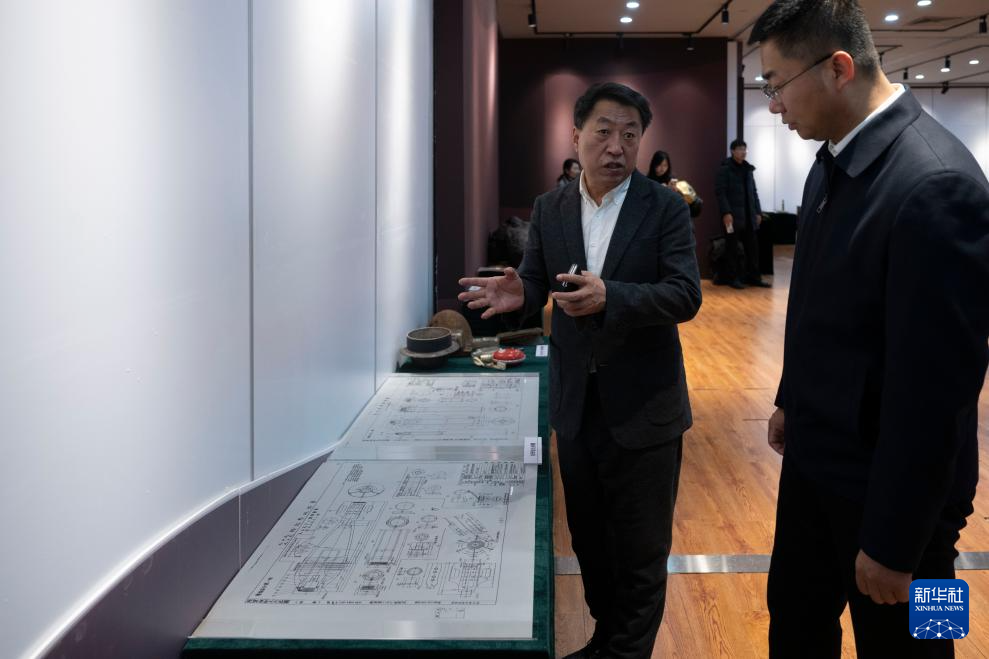12月31日,侵华日军第七三一部队罪证陈列馆馆长金成民(左)在社会捐赠文物史料特别展上介绍展览情况。