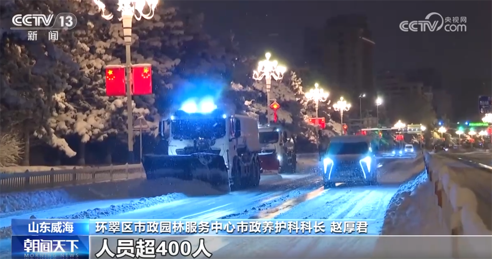 环翠区市政园林服务中心市政养护科科长 赵厚君:我们是从凌晨2点多开始行动的,出动了各类清雪机械200余台、人员超400人,清雪面积达162万平方米。经过三个多小时的作业,目前市区主干道的大部积雪已基本清理完毕,路面恢复通行。