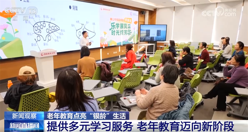 央视网消息:目前,我国已进入中度老龄化社会,未来几年,老年人口预计将突破3.9亿。面对日益庞大的银发群体,满足精神需求与学习渴望的老年教育正悄然升级——它不再是打发时间的“兴趣班”,更多的是成为许多老年人拓展社交、实现价值的“人生新舞台”。