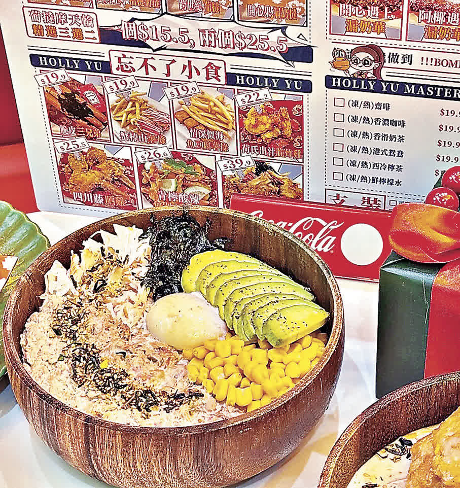 這間新式茶啡廳繼粉嶺聯和墟店後,又於油麻地開設新店,位置鄰近油蔴地警署。大家打卡完油蔴地警署光影之旅,不要忘記順便去食。餐廳招牌及室內裝潢為懷舊港式風格,而餐牌主打新式融合菜,不但有賣相極佳的港式西餐及茶餐,更有好食又健康的飯、意粉、小食和甜品,選擇多樣。主食方面有飯、麵、米線套餐可選,減脂人士必試牛油果吞拿魚POKE拌飯套餐(59.9元),牛油果與吞拿魚粒配上香甜玉米粒、脆脆海苔碎和增香芝麻,與順滑的半熟雞蛋液一起攪拌開,豐富配料帶來多樣口感,每一次咀嚼都讓口腔中充滿脂香。沒有減肥需求,可以來一份香滑手作奶油全家福飯套裝(59.9元),米飯上淋滿甜蜜又邪惡的手作奶油,配料更是足量,兩大塊酥炸肉排,再配上魚豆腐和香腸,肉食控大滿足。9吋長蟹棒手作奶油麵套餐同樣不容錯過,超長蟹柳大件又抵食。店內的8款米飯與麵套餐,統一售價59.9元,另附贈荷必特飲和傳統飲品,更可以9.9元追加薯條、葡撻等惹味小食,人均約60元就能吃到飽。
