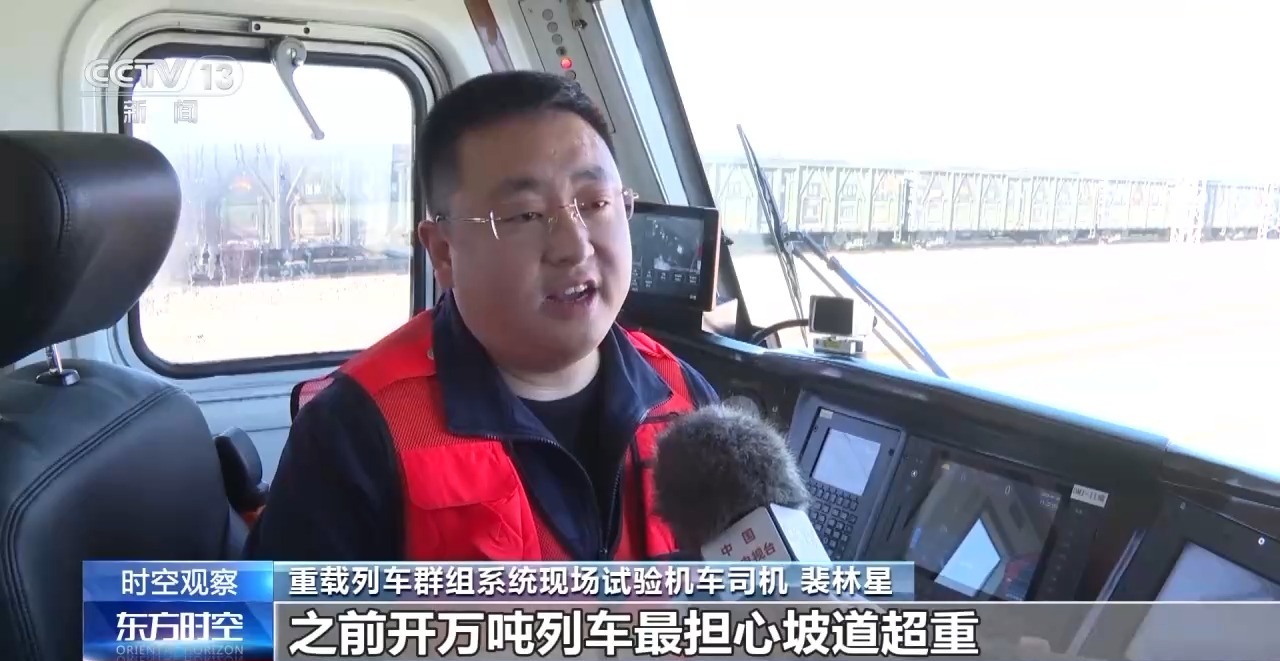 重载列车群组系统现场试验机车司机 裴林星:我开了12年重载列车,之前开万吨列车最担心坡道超重,信号不同步容易造成列车前后不平稳。现在3.5万吨大群组,操控跟5000吨普列一样平稳,7列车同步运行,再也不用担心操控风险,心里也特别踏实。