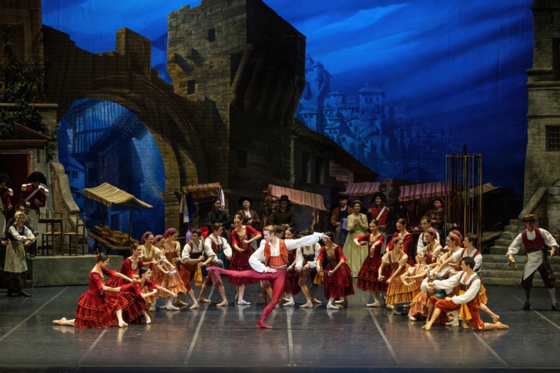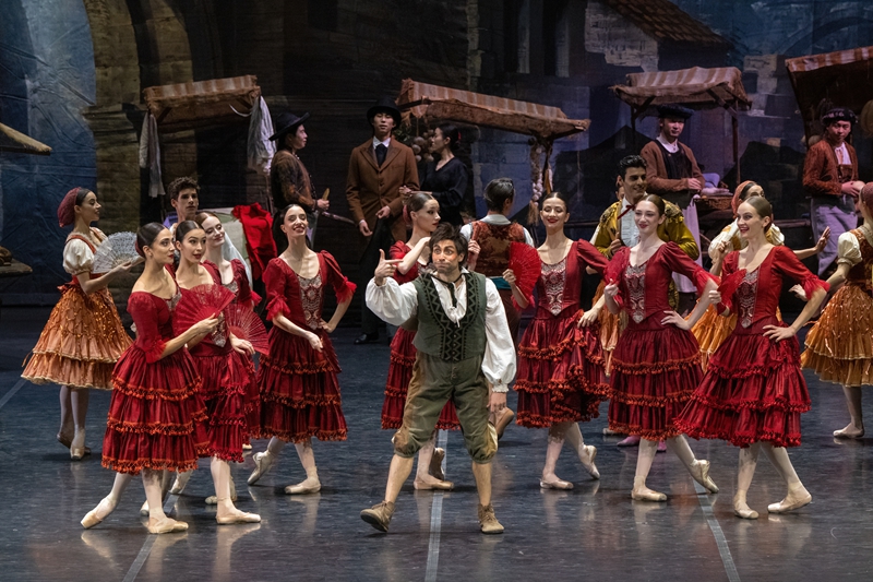 作为以高难舞蹈技巧著称的舞剧,《堂·吉诃德》历来是检验一个舞团水准的试金石,而此次斯卡拉歌剧院芭蕾舞团带来的更是业界公认的最具难度的由芭蕾巨星鲁道夫·努里耶夫编排的版本。诚如努里耶夫所言:“我的制作主要是一系列的舞蹈加上巨大的热情和喜剧精神!”这个创作于1966年的经典版本在历经六十年后的今天看来依旧光芒璀璨,不仅将戏剧情节、人物塑造与舞蹈表演进行了更加紧密与流畅的融合,使剧情更为引人入胜,同时还在彼季帕原作基础上大幅增加了舞蹈编排的难度,特别是对于男演员而言提出了更为严苛的要求,一个个紧密连接的高难技巧、一段段“左右开弓”的动作衔接,丝毫没有留下一丁点藏拙的空间,需要演员具备综合全面的舞蹈能力才能完美胜任。