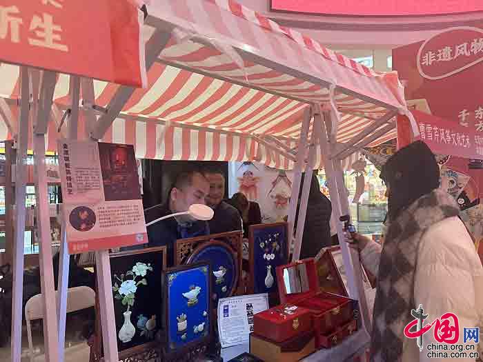 开幕现场,60余家非遗品牌齐聚,带来绒花、柴烧、古法制香等项目,还有来自河北省廊坊市、有“燕京八绝”之称的雕漆、花丝镶嵌、金漆镶嵌、景泰蓝的非遗珍品集中亮相,市民可现场观赏精湛的非遗技艺、参与互动体验。同时,还能在文创馆品典籍书香,在市集体验手作温度,于咖啡香中感受传统与现代碰撞,让传统文化落地生根,为新春添满醇厚年味。