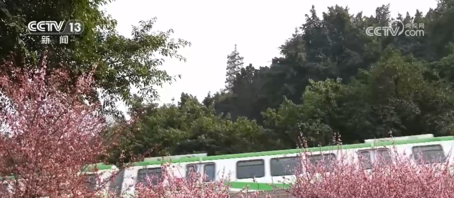 记者在重庆佛图关公园看到,成片的美人梅绽放,花海如云似霞,缀满枝头。从这里经过的轨道交通二号线,穿越花丛,被网友们形象地称为“开往春天的列车”。这里也是重庆最具代表性的景观之一,每年都会吸引大量市民游客前来踏春赏花,定格轨道列车邂逅粉色花海的浪漫时刻。