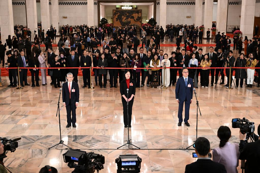 3月11日,全国政协十四届四次会议第三场“委员通道”集体采访活动在北京人民大会堂举行。新华社记者 曹祎铭 摄