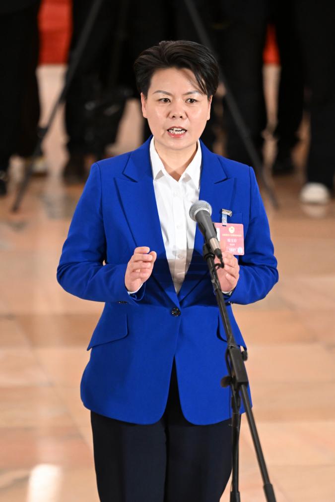 3月11日,全国政协十四届四次会议第三场“委员通道”集体采访活动在北京人民大会堂举行。这是全国政协委员程玉珍接受媒体采访。新华社记者 曹祎铭 摄