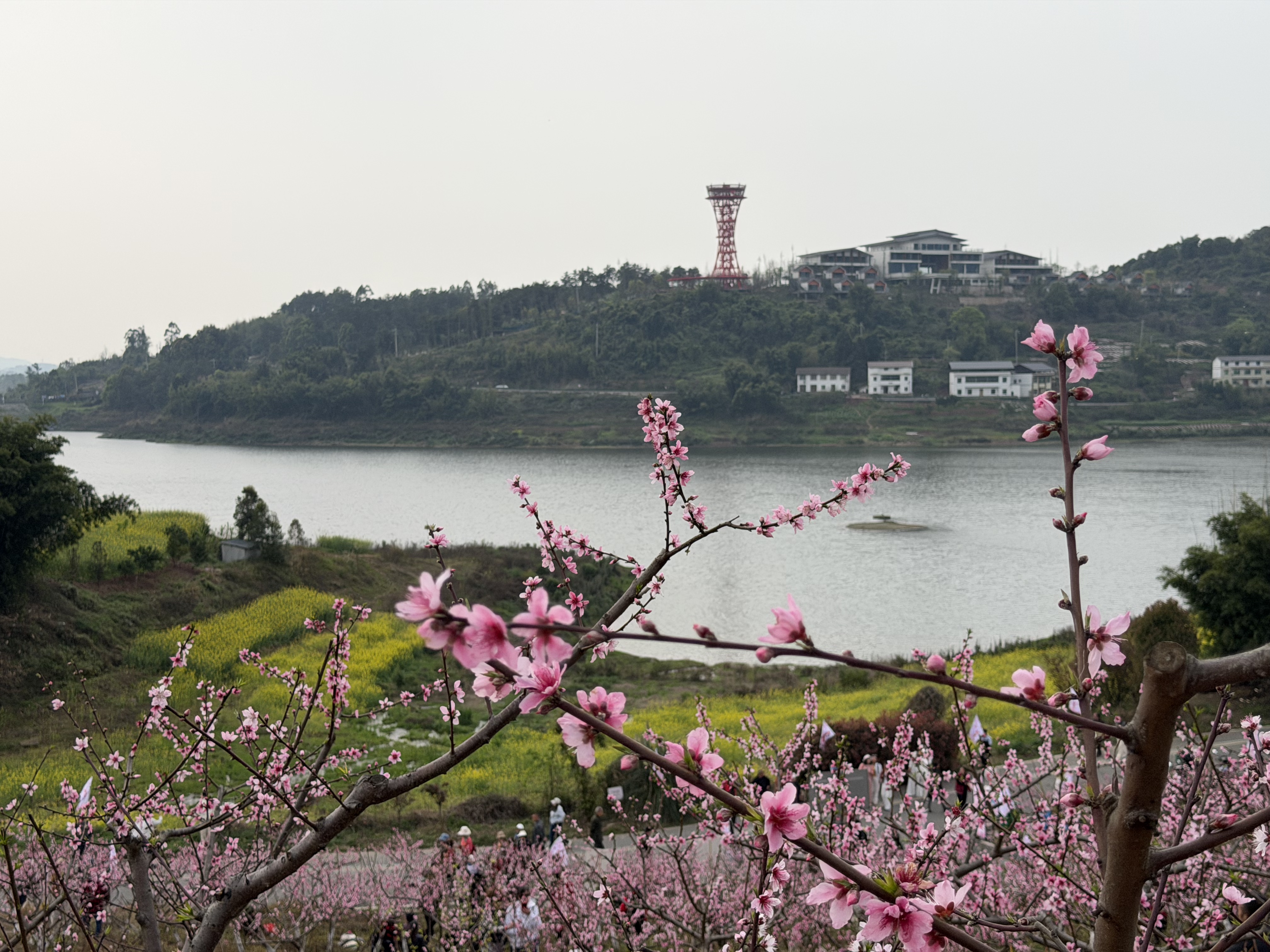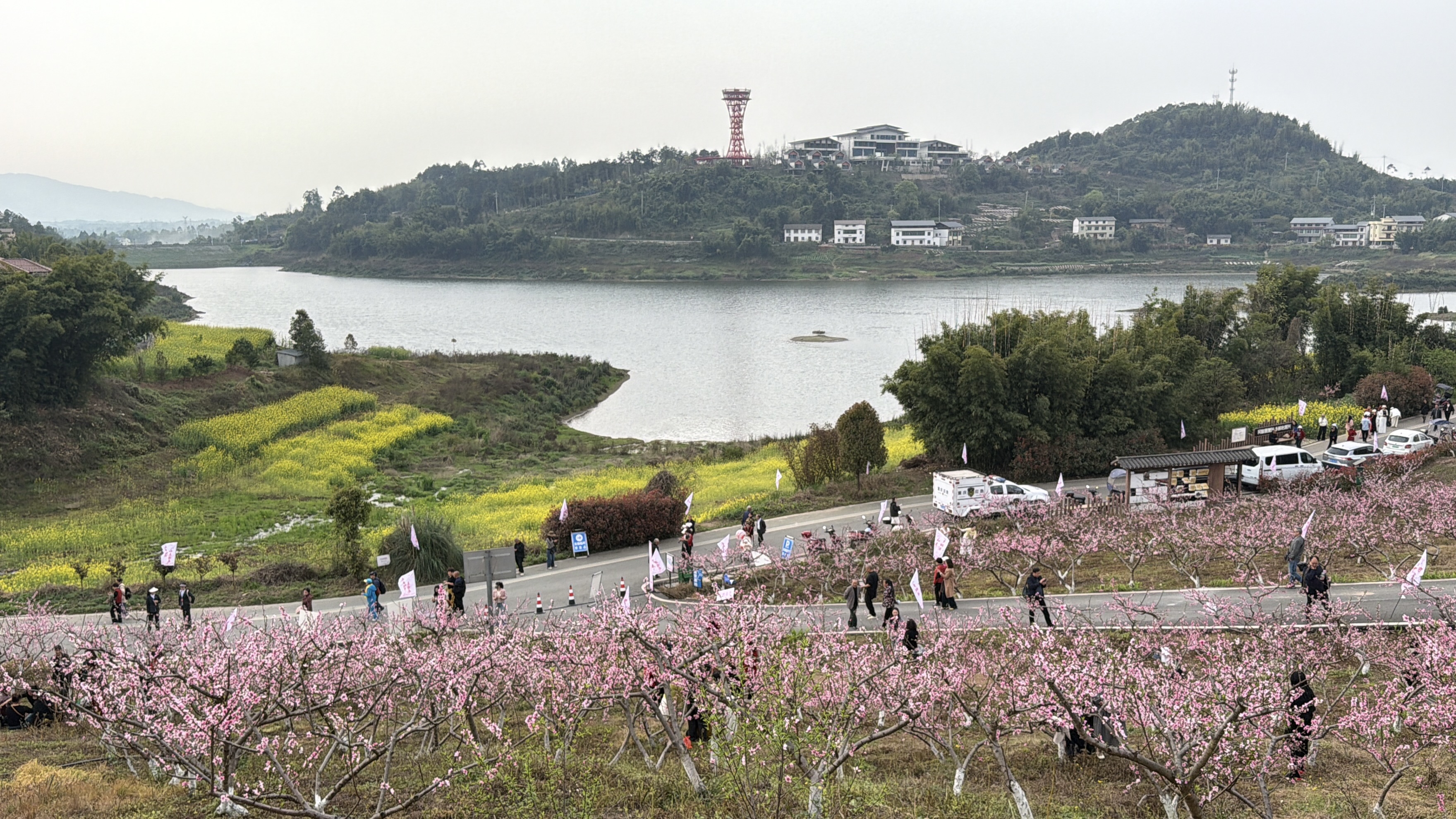 三月的巴岳山麓,春意渐浓。重庆市铜梁区围龙镇龙湖村,千亩桃林迎来盛花期,粉红的桃花缀满枝头,与桥亭湖的一池碧波相依相映。3月13日,第五届中华龙乡·桃源赏花季暨巴蜀“e乡e味”美食文化周在这里拉开帷幕,让围龙这座小镇,再次成为游客踏青的目的地。