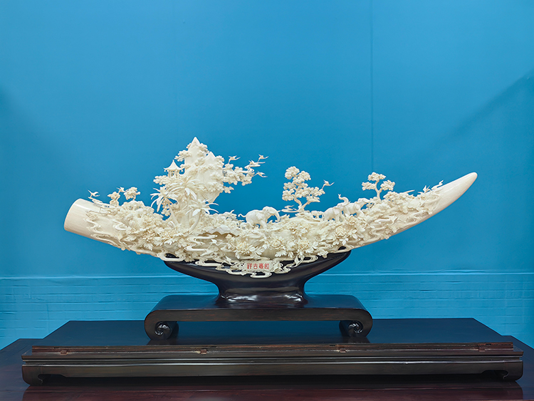 《吉祥如意》,张民辉,牙雕,176×23×85cm,2023