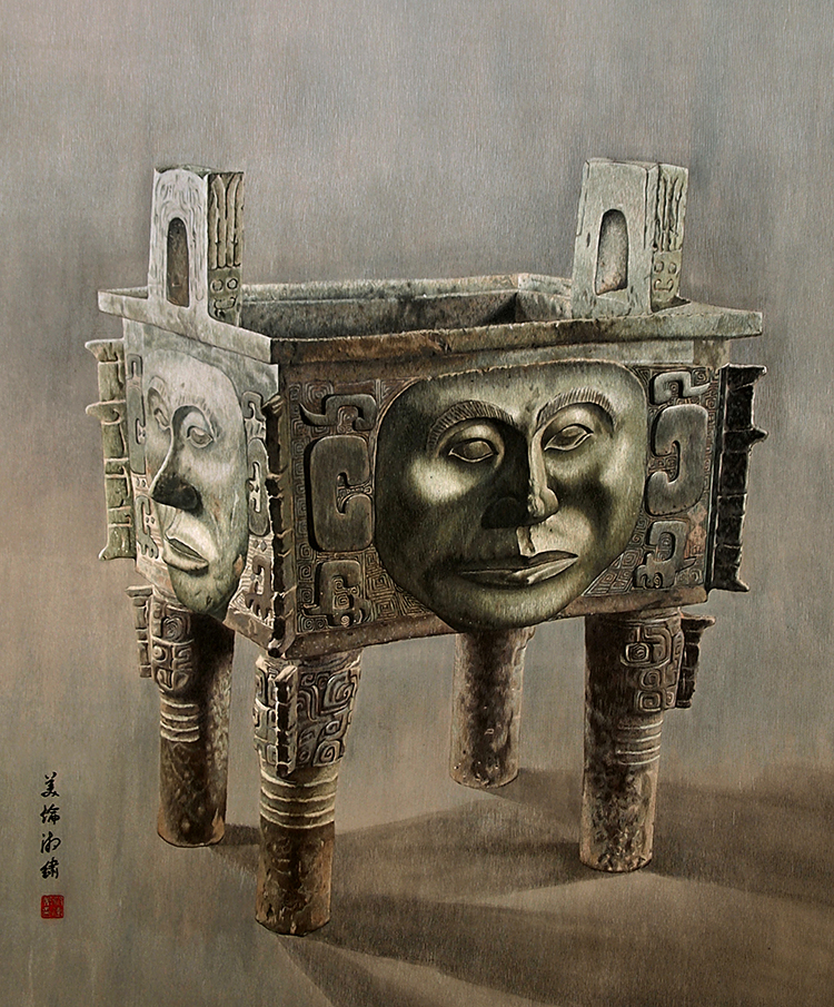 《人面方鼎》,邬建美,湘绣,146×126cm,2024