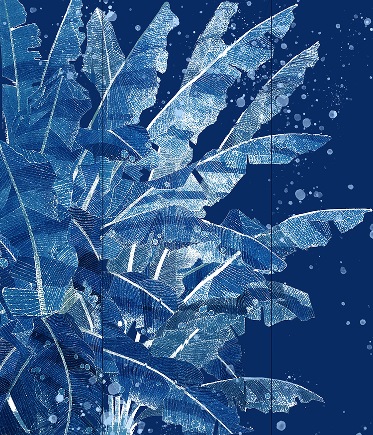 《听雨》,哀警卫,蓝印花布,200×230 cm,2022
