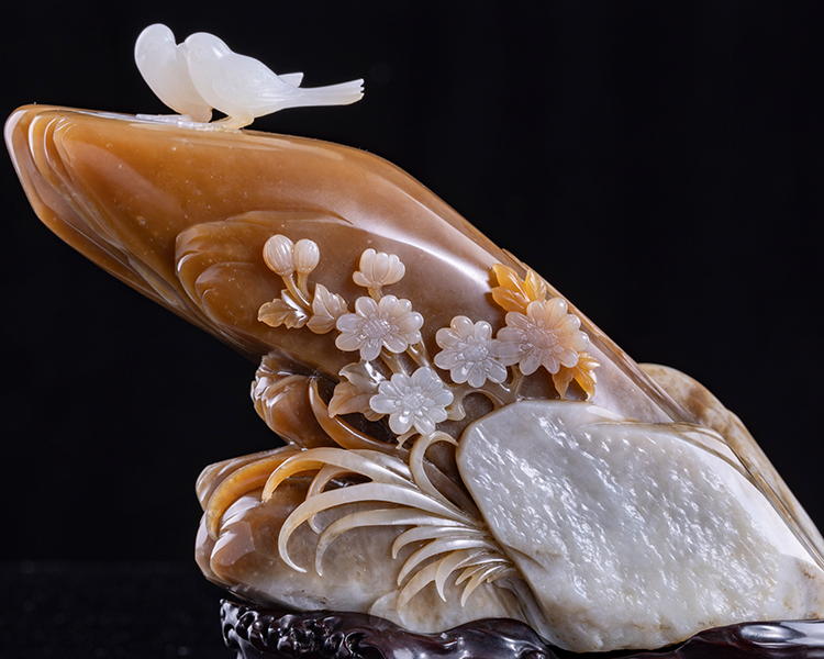 《鸟鸣涧》,吴灶发,玉雕,17.5×7.7×5.1cm,2025