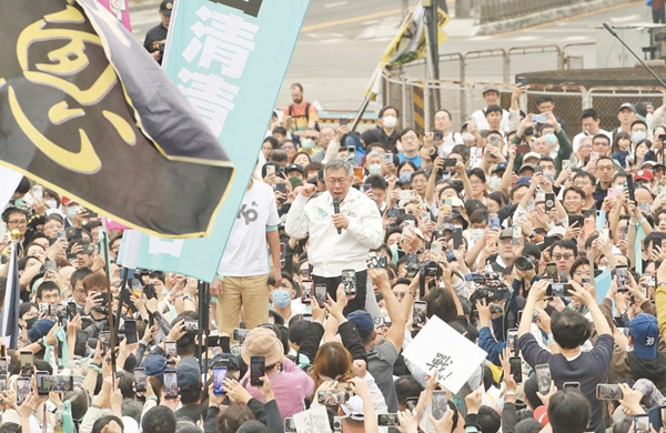 柯文哲(中)喊话“不会投降”!(图片来源:台湾“中时新闻网”)