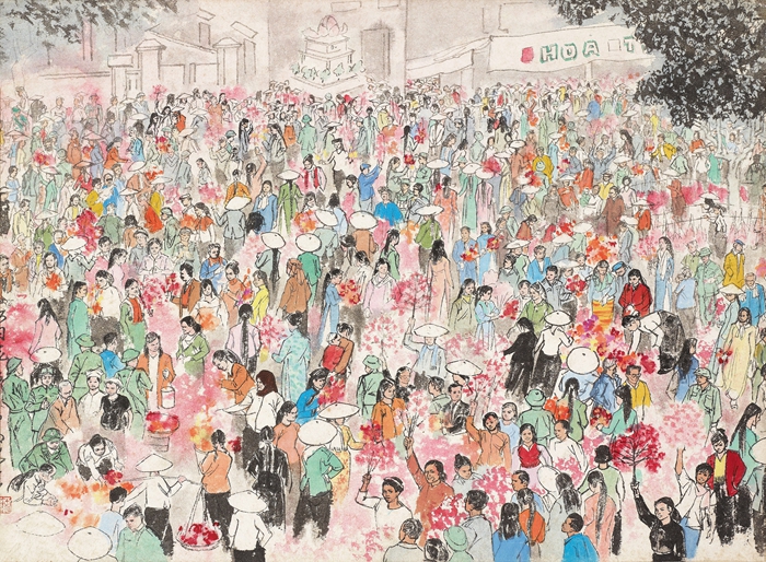 河内花市 亚明 34cm×46cm 纸本设色 1974年 合肥市文学艺术策展中心(亚明艺术馆)藏