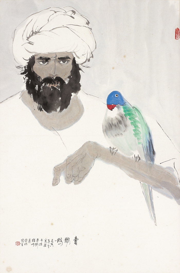 卖鹦鹉 亚明 68cm×45.5cm 纸本设色 1978年 合肥市文学艺术策展中心(亚明艺术馆)藏
