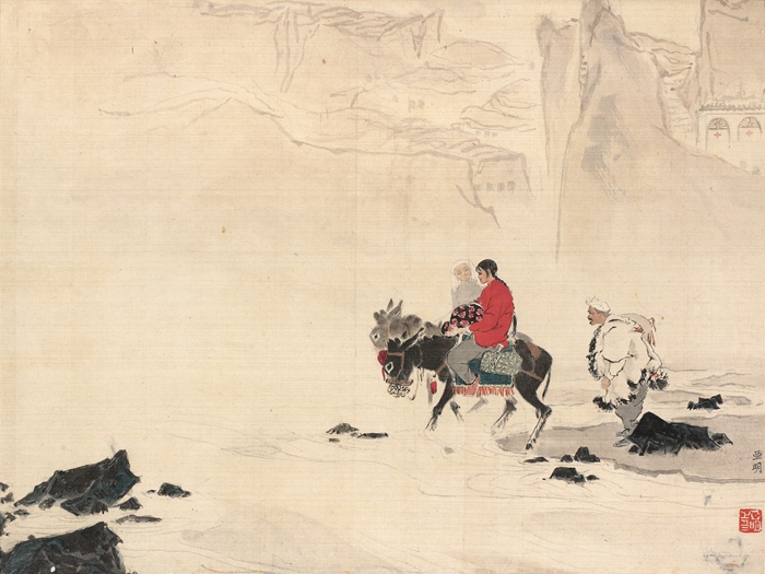 这次集体写生全程两万三千里。写生团沿途访问、参观、写生、创作、交流,与各地同仁共同探索“中国画传统笔墨如何反映现实生活”这一重要课题。亚明原以人物画见长,写生途中不仅创作出《出院》《陕北老游击队员》等经典之作,同时也开始关注对于山川风情和生产建设的描绘。