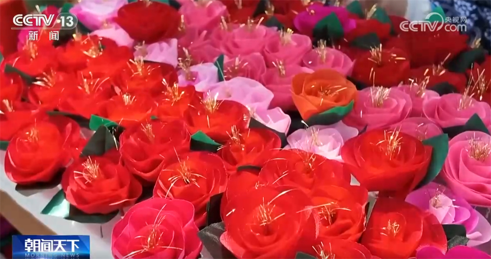 蚕花扎制、蚕茧手作等特色摊位前围满了慕名而来的游客,大家动手体验蚕花制作,沉浸式感受蚕桑非遗技艺的精巧与独特。
