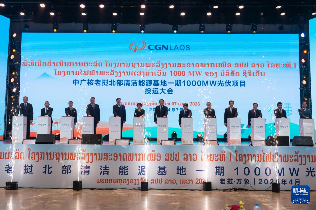 新华社万象4月8日电(记者马淮钊 赵旭)中广核老挝北部互联互通清洁能源基地一期100万千瓦光伏项目投运大会7日在老挝首都万象举行,老挝总理宋赛及中老双方相关政府和企业代表200余人出席活动。