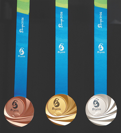 奖牌侧面有“Welcome to Sanya”的英文字样