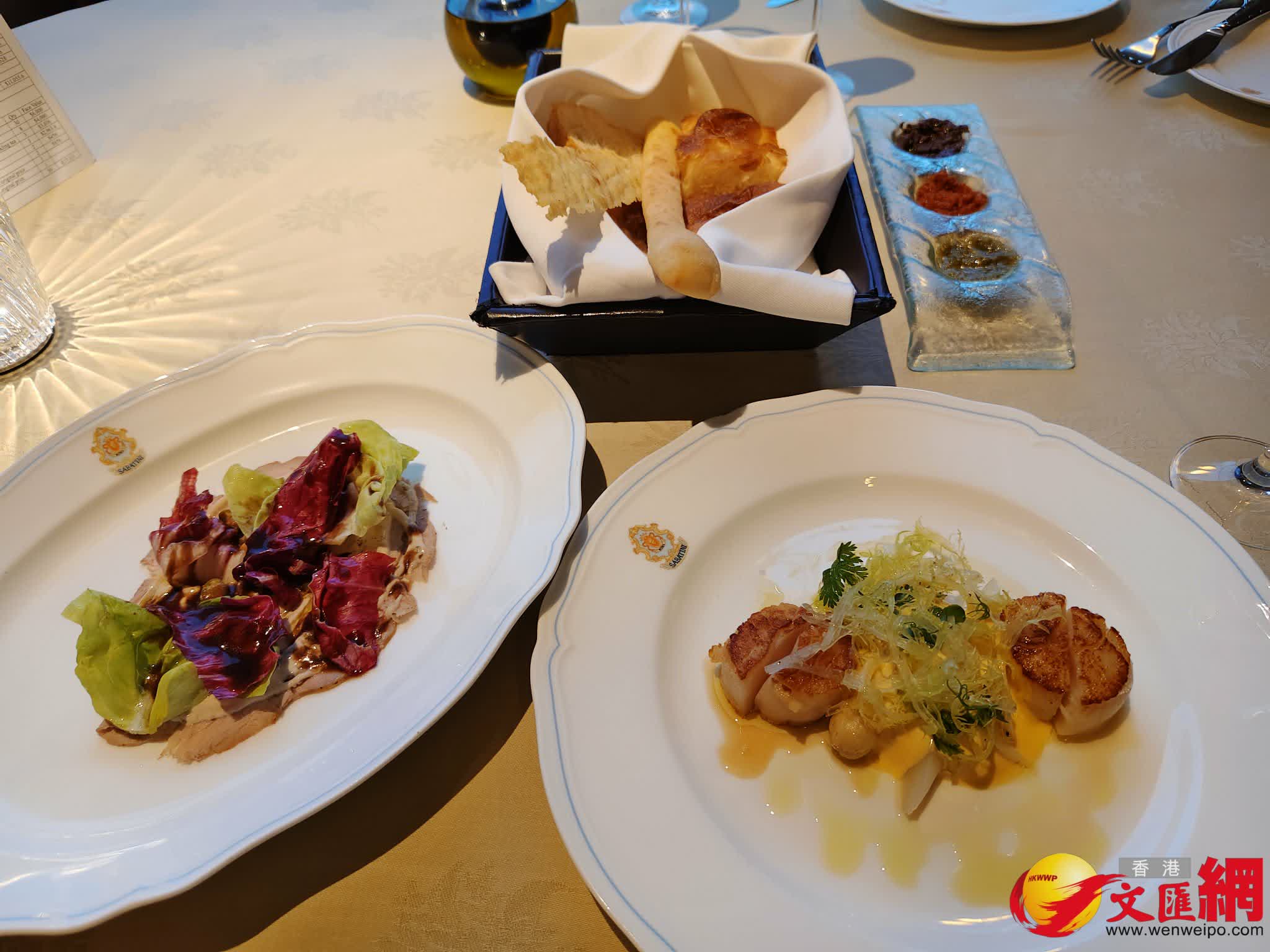 星級主菜有「澳洲和牛牛柳配黑松露汁及米蘭式炸白蘆筍」,頂級澳洲和牛牛柳素來是主廚得心應手之作,外焦內嫩,淋上黑松露汁更顯芳香,旁邊搭配經典米蘭式炸法處理的白蘆筍,口感金黃酥脆。主廚巧思更見於創意甜品:「白蘆筍雪糕配魚子醬、橄欖油及可可脆片」注入細膩清新的靈魂,帶有淡淡甘甜的蔬菜香氣,鹹甜、脆滑、冷熱交織,是別樹一格的饗宴壓軸之作。如經網上訂座後再致電餐廳,可免費升級甜品,並可在甜品上寫上祝福字句。