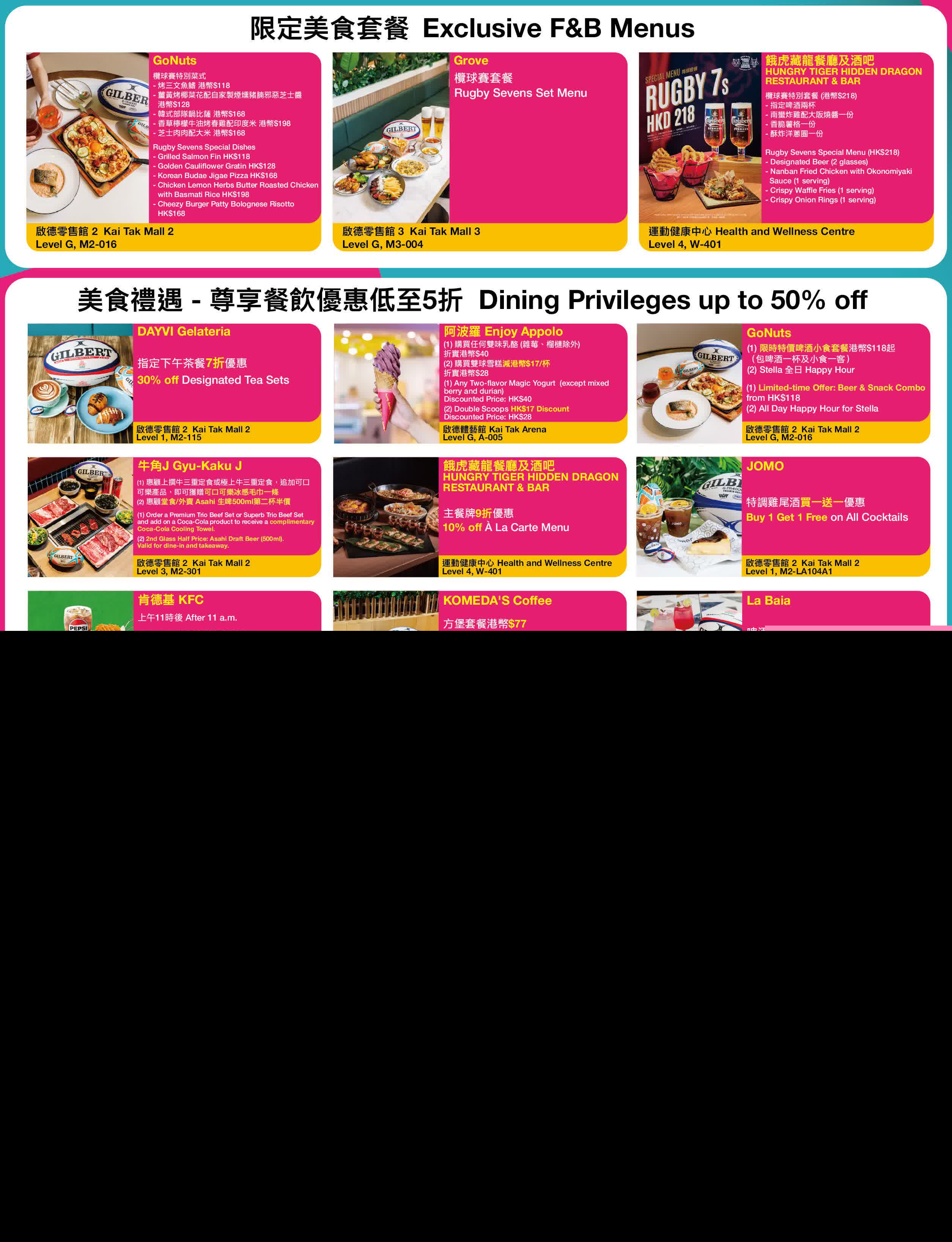 地點:啟德零售館、運動健康中心、美食海灣、北斗園