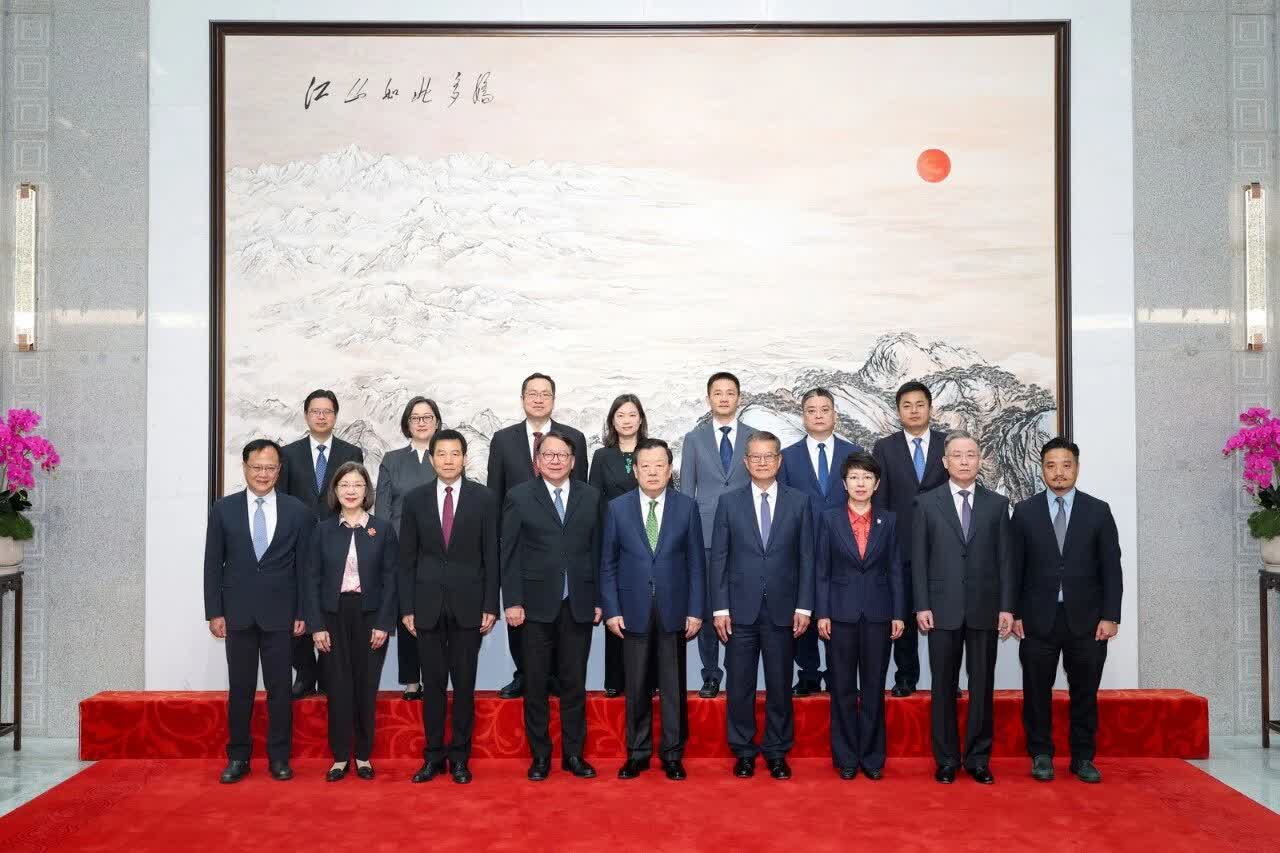 4月16日上午,中央港澳工作辦公室主任、國務院港澳事務辦公室主任夏寶龍在北京會見香港特區政府政務司司長陳國基、財政司司長陳茂波一行,就香港主動對接國家「十五五」規劃、融入和服務國家發展大局座談交流。
