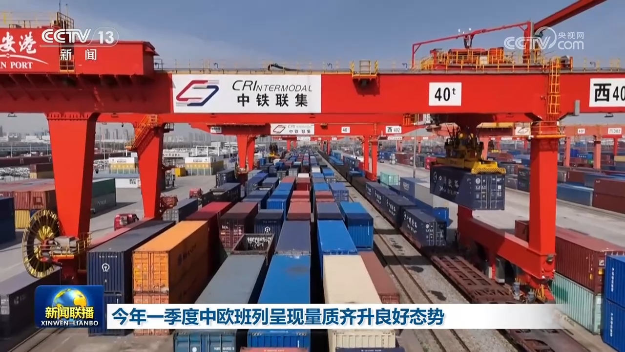 央视网消息(新闻联播):记者4月16日从国铁集团获悉,今年一季度,中欧班列累计开行5460列,发送货物54.6万标箱,同比分别增长29%、22%。中欧班列呈现量质齐升良好态势。