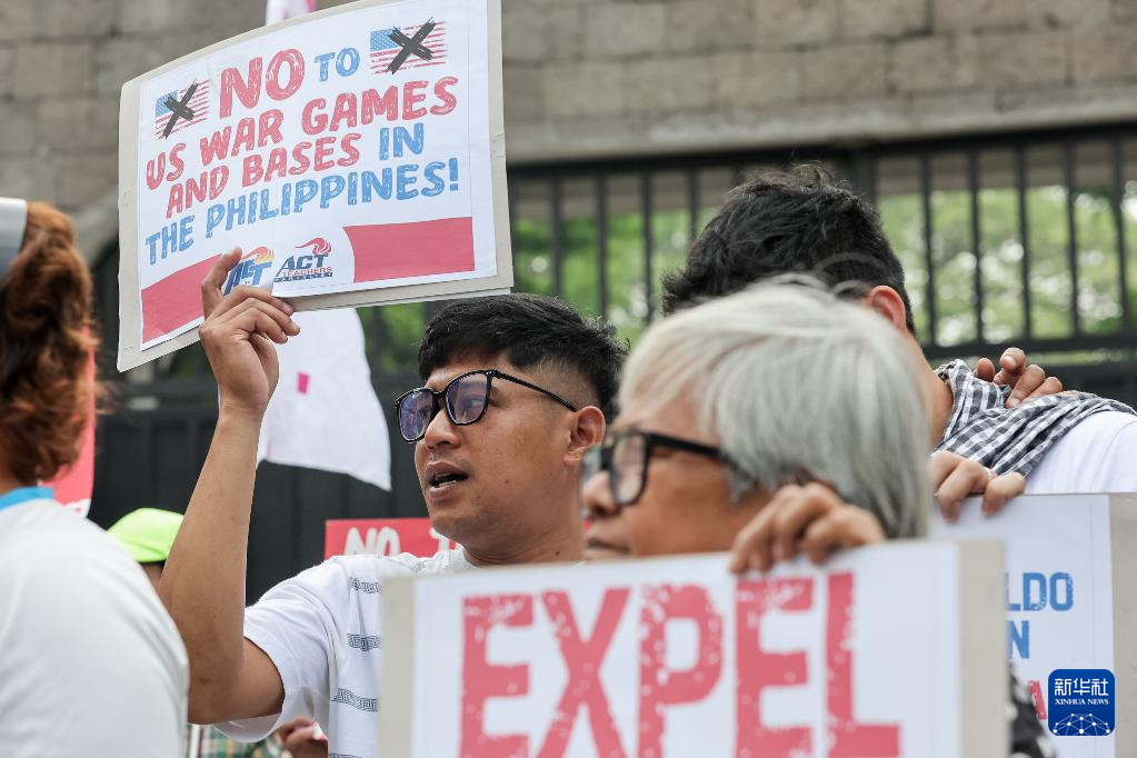 新华社马尼拉4月20日电(记者赵晨捷 李萌)菲律宾和美国“肩并肩”联合军事演习20日在菲首都马尼拉启动。菲律宾民众当天在菲武装部队总部外集会,抗议菲美举行联合军演。