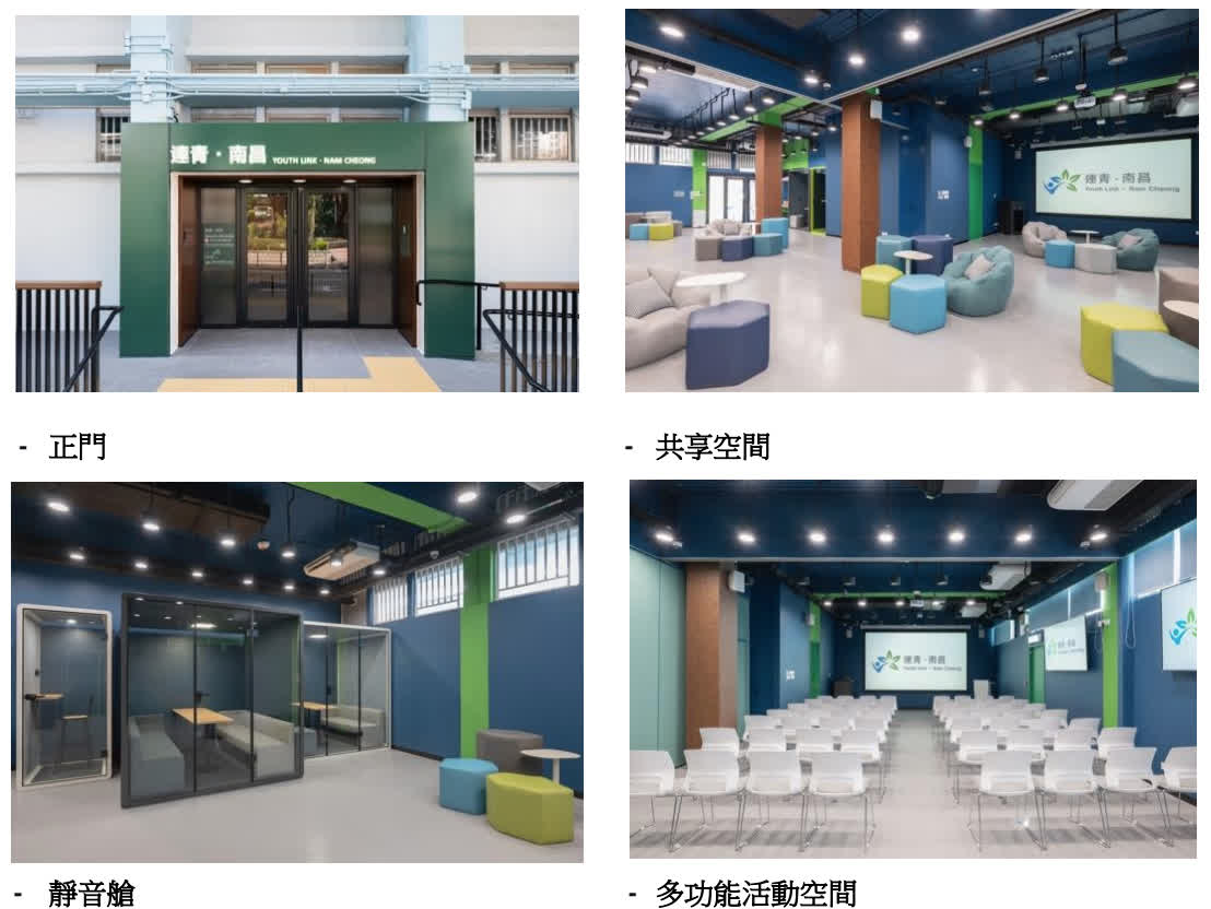 「連青・南昌」毗鄰南昌地鐵站,位處文青集中地:第一期設有多用途活動空間、共享空間及靜音艙,去年12月試營運;第二期除亦設有多用途活動空間及共享空間外,並增設音樂室、錄音室及舞蹈室等,於活動後正式啟用。