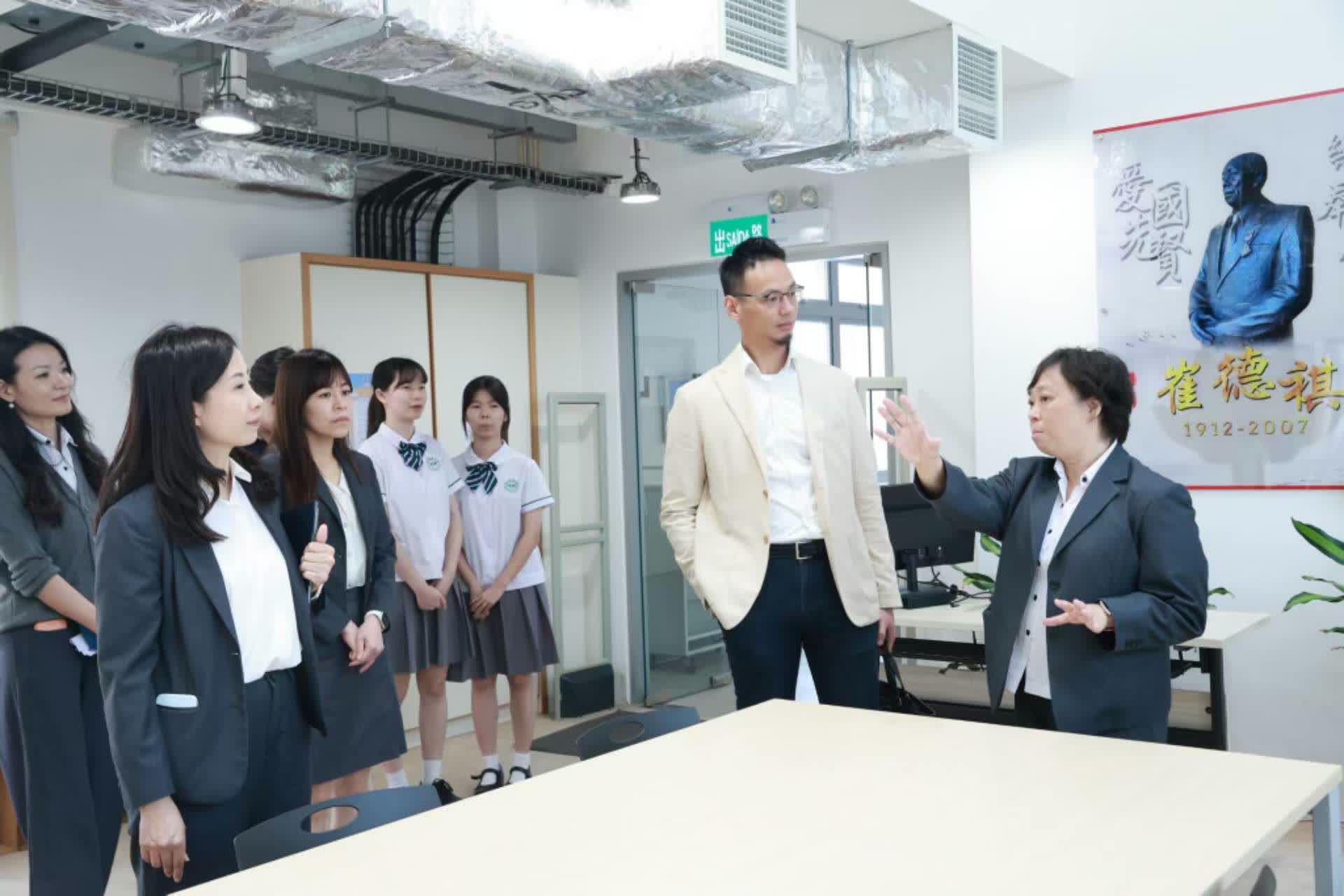 上午,交流團首先抵達澳門教業中學,與邱副校長、相關老師及學生進行座談。教業中學由澳門著名愛國領袖何賢先生於1975年創辦,秉承「教重在德,業精於勤」的辦學宗旨,堅守「愛國愛澳愛家鄉」的全人教育核心價值。學校以「家國情懷、傳統根基、世界眼光」為培養目標,校園內建有「家國天下」澳門歷史文化體驗館及孔子文化園等特色課程學習場域,並向社會公眾開放,成為青少年愛國主義教育的生動詮釋。
