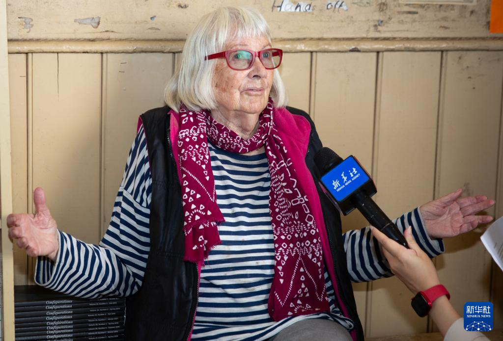 4月21日,“泰晤士街图书馆”的创办人和管理员伊玛·蒂尔在位于澳大利亚悉尼市巴尔梅恩区的图书馆内接受新华社专访。新华社记者 马平 摄